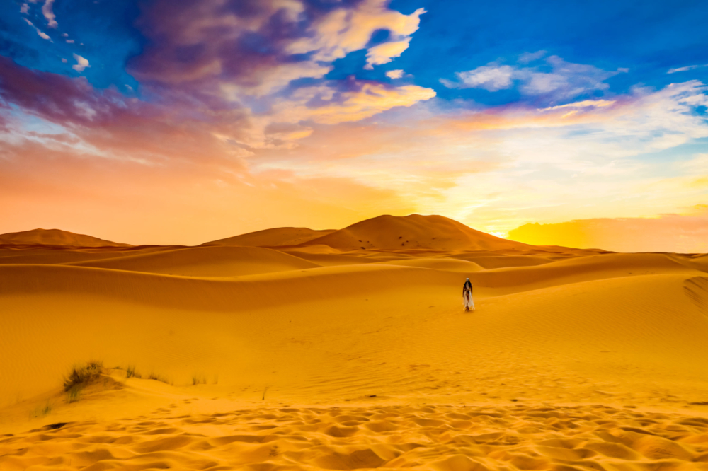 一位貝都因婦女走過撒哈拉沙漠